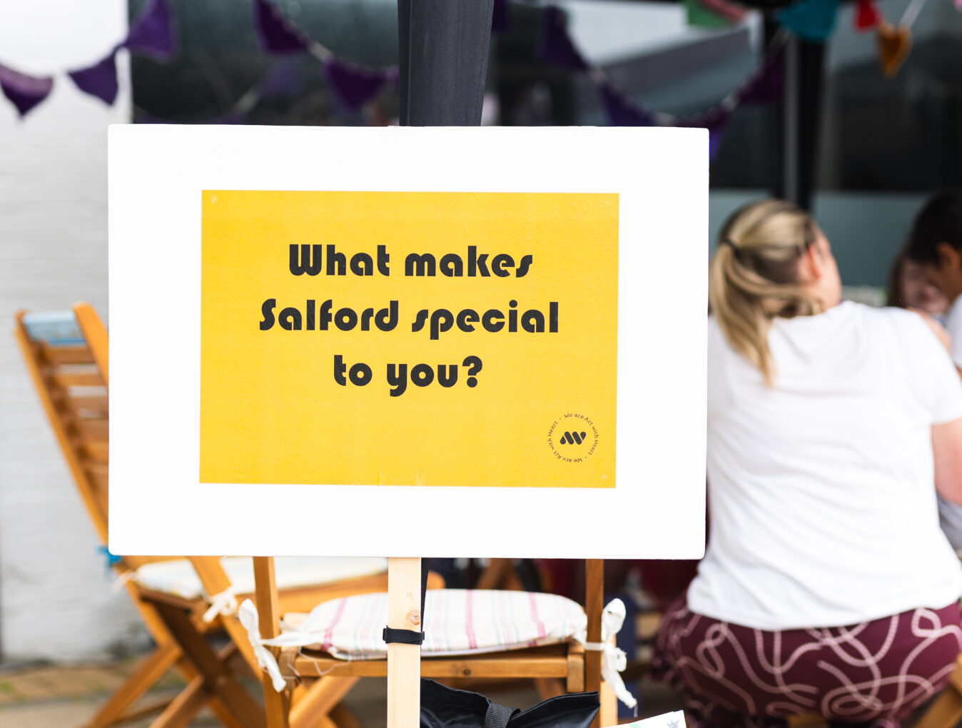 Over the summer, we started spreading the love for Salford in the lead-up to the city’s big 100th birthday with loads for the whole family to enjoy. People got crafty with artist Phoebe Foxtrot in our creative corner and stepped into Salford’s story with hands-on activities, helping to reimagine the city’s next 100 years with artist Sarah Hardacre.